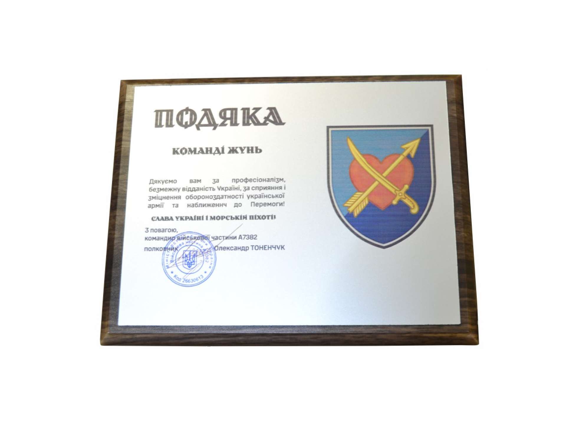 Подяка А5 формат на золотистому або сріблястому пластику з дерев'яною підкладкою.