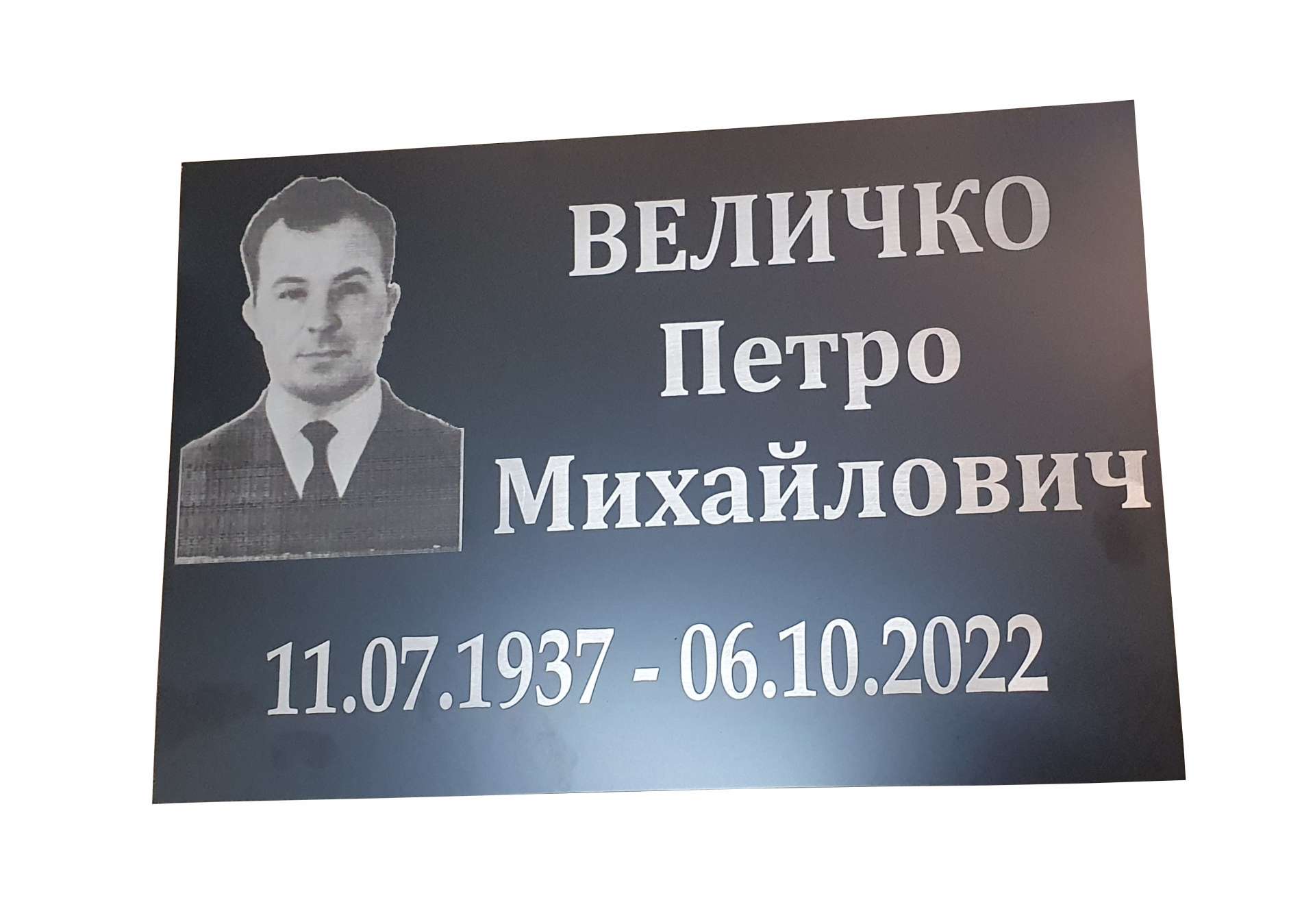 Ритуальная табличка с портретом из композита. Изготовлена методом фрезерной обработки в Запорожье. Обладает очень длинными свойствами эксплуатации.