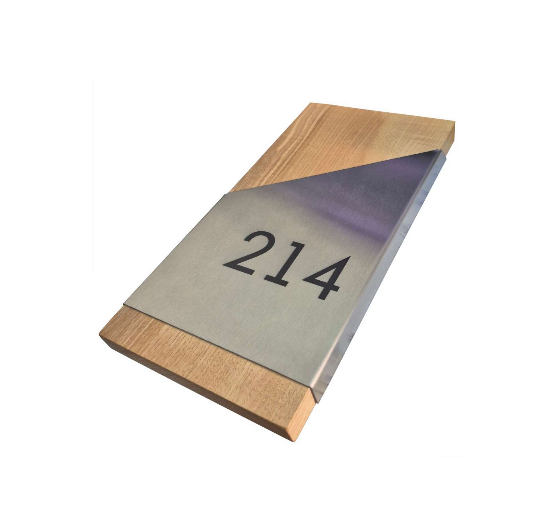 Табличка номер на дверь из натурального дерева и нержавеющей стали. Отличный экодизайн, вариант для отелей и офисов отвечающее стилю и современности. Табличка идет размером в 300х150 мм, с толщиной натурального дерева в 20 мм, но можно изготовить любой другой размер.