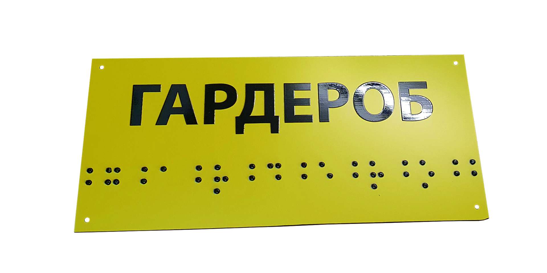 Табличка со шрифтом Брайля сделана из алюминиевого композита в Запорожье. Шрифт выпукл согласно стандарту. Изготовление любых размеров под ваш заказ.