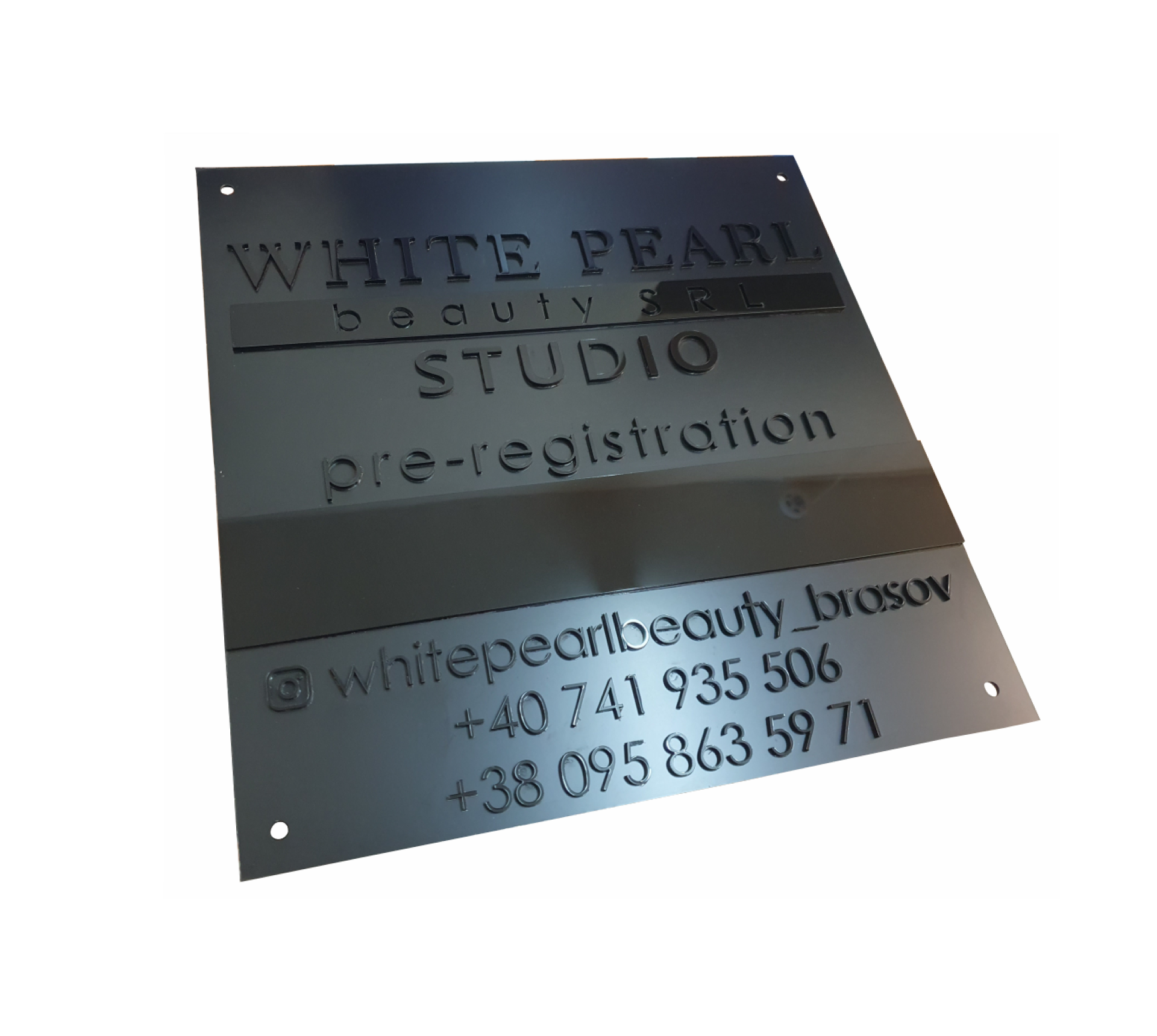 Вывеска объёмная с рельефными черными буквами из акрила на черном композите в Запорожье. Данная вывеска подходит для наружного и внутреннего использования.
